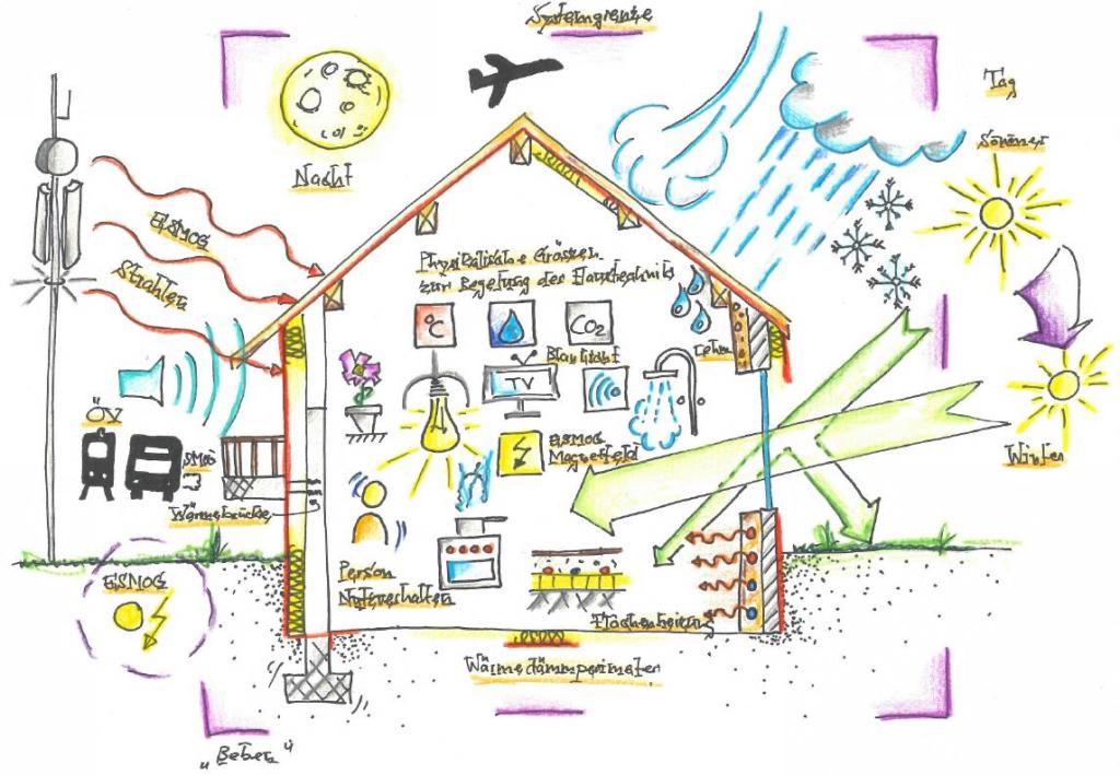 Die inneren und äusseren Einflüsse sind je nach Vorhaben und Standort unterschiedlich. Mit der Gebäudetechnik wird versucht diesen Einflüssen entgegen zu wirken. Dafür werden drei physikalische Parameter erfasst. Die Raumtemperatur, die Luftqualität und die Luftfeuchtigkeit.