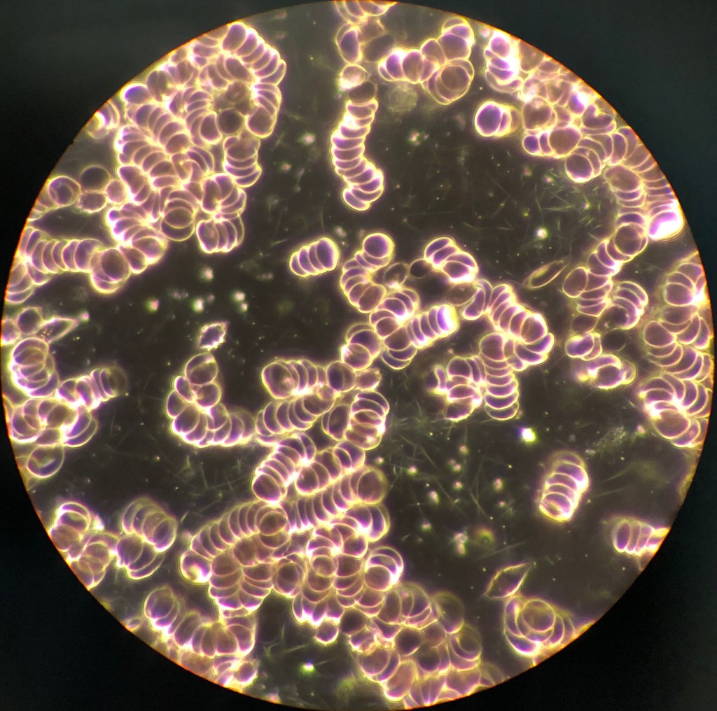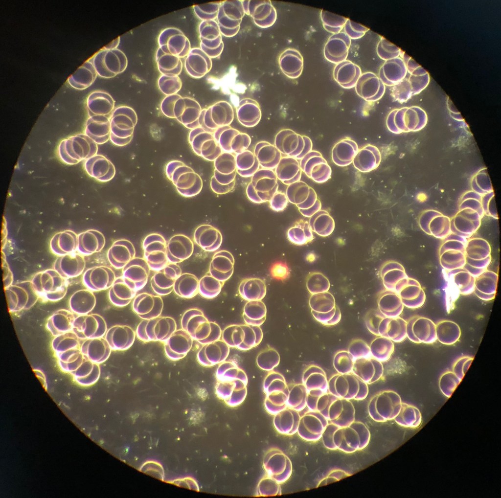 Leider konnte die Familie den ersten Schritt nicht vollziehen, da die Anreise zum Untersuchungsort bereits mit dem Elektroauto stattgefunden hat. Ein optimales Blutbild unter dem Dunkelfeldmikroskop sollte wie folgt aussehen: